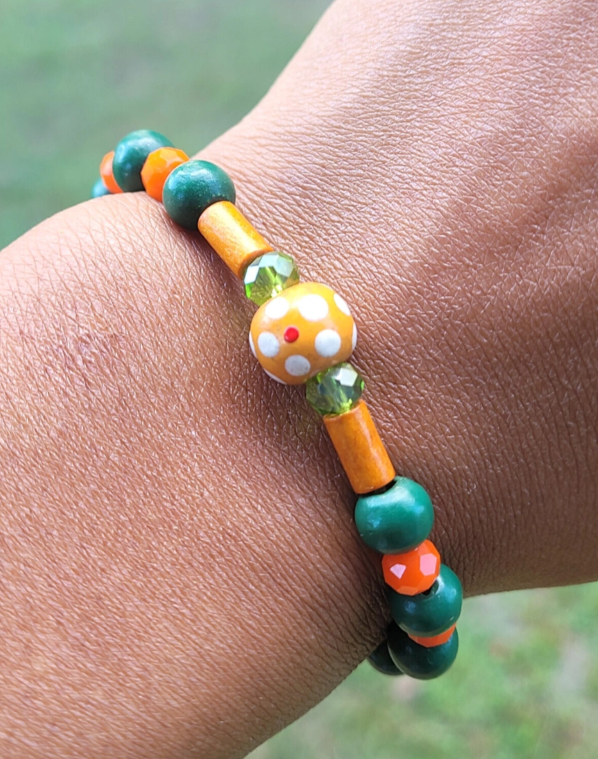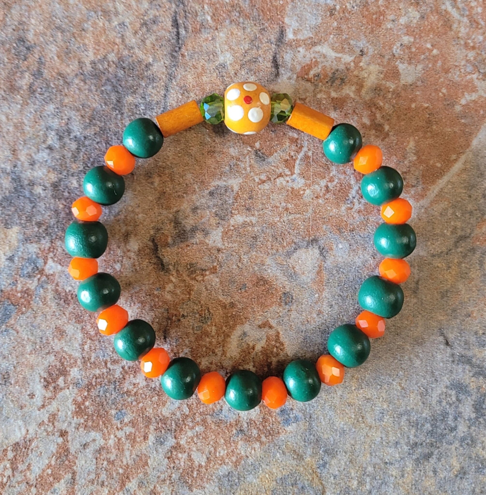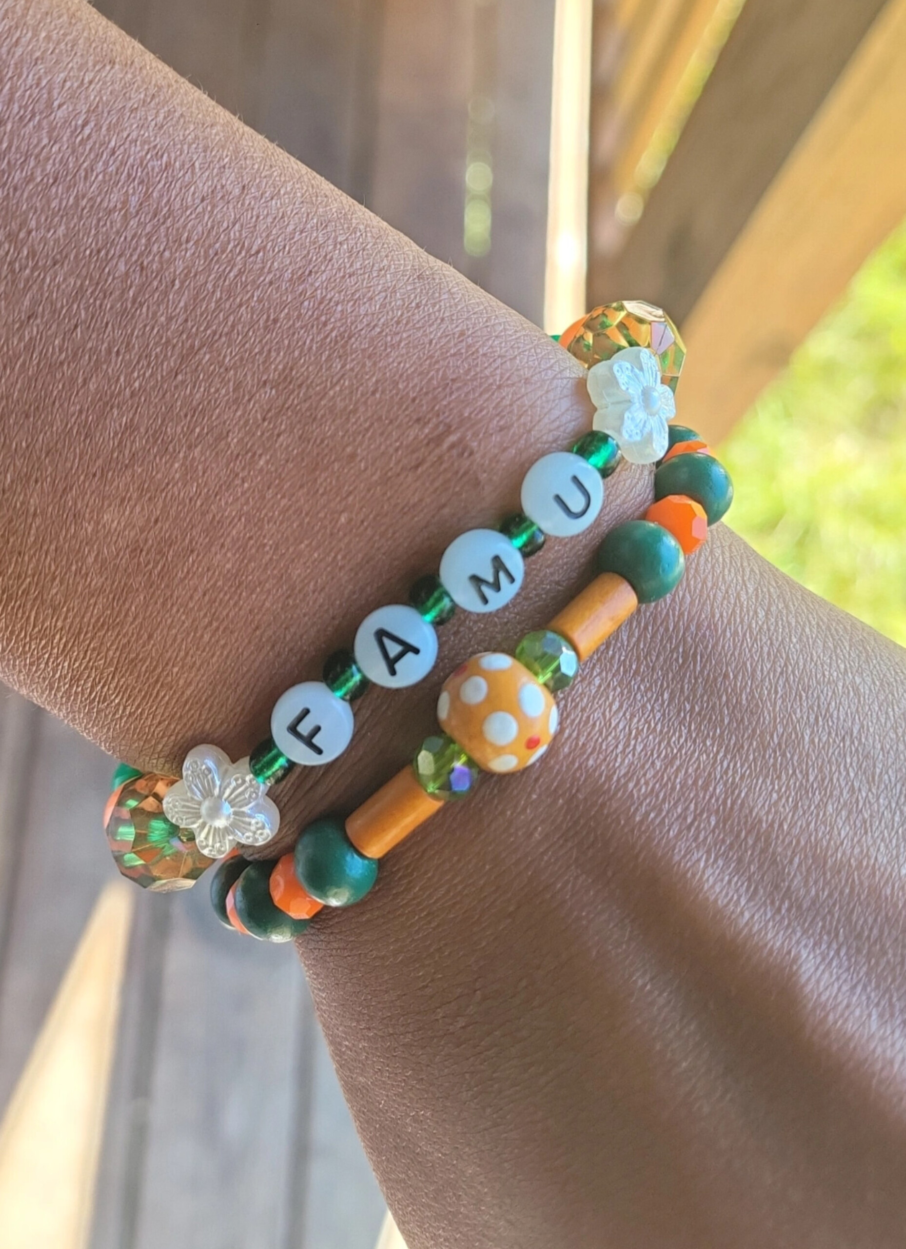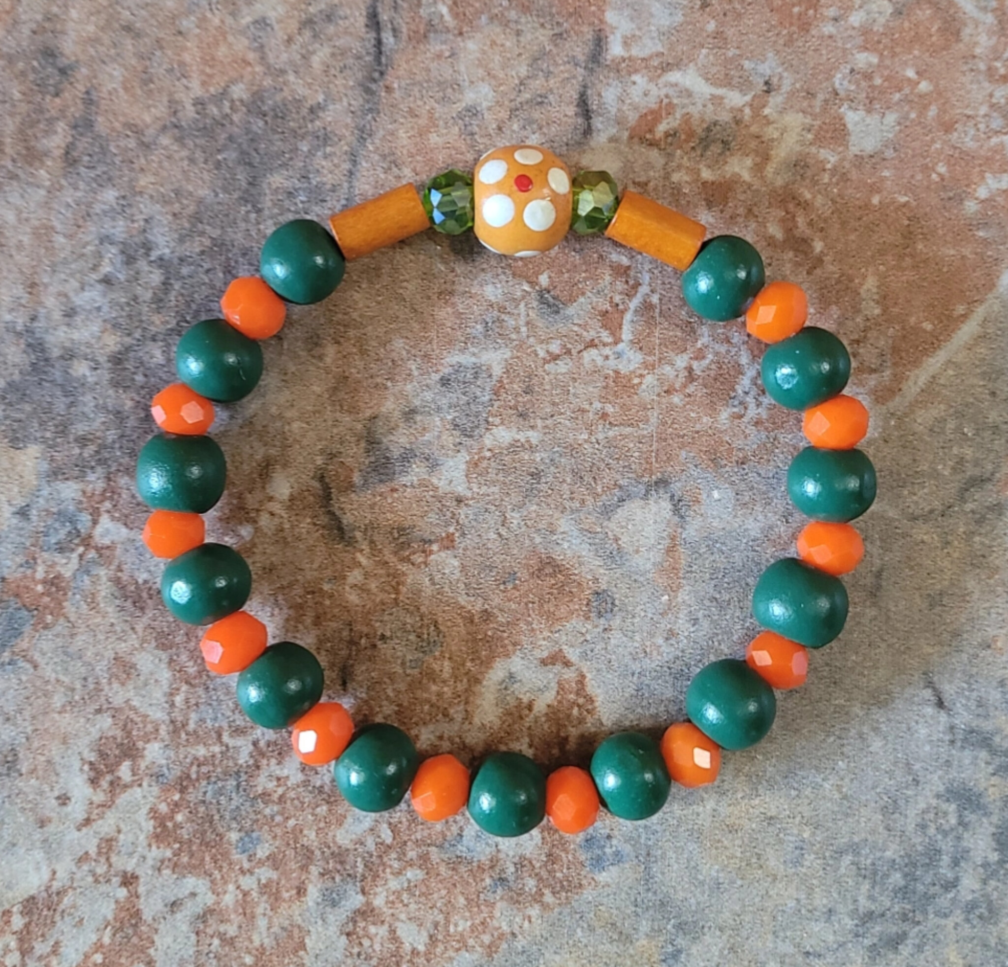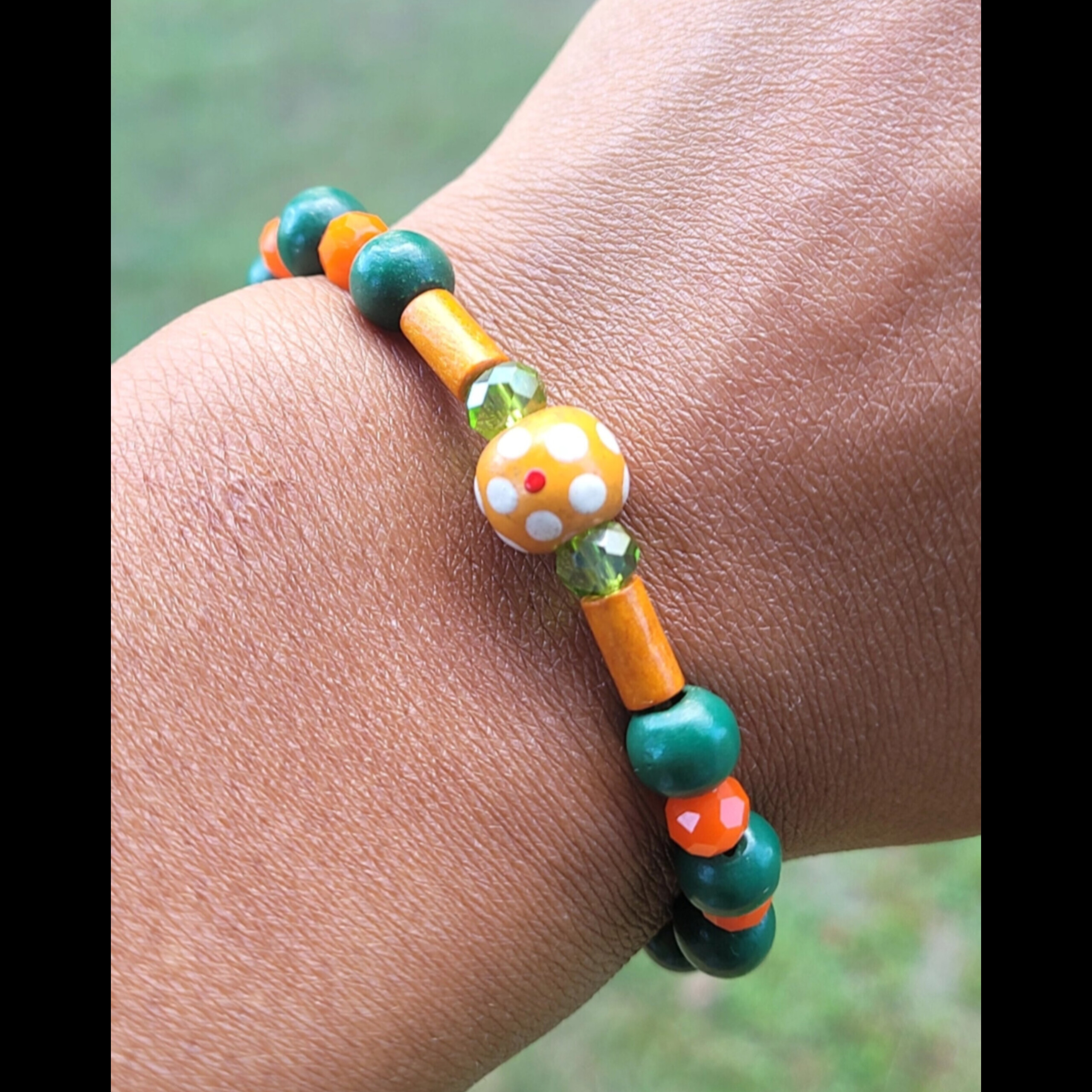 RATTLER PRIDE🐍🧡💚 BRACELET💫 READY-MADE⏳️🎨 By Nubian Collection Artwear 👑 🔹️ SIZE: 6 & 1/2 INCHES 🧿 ONLY ONE AVAILABLE⏳️⏳️