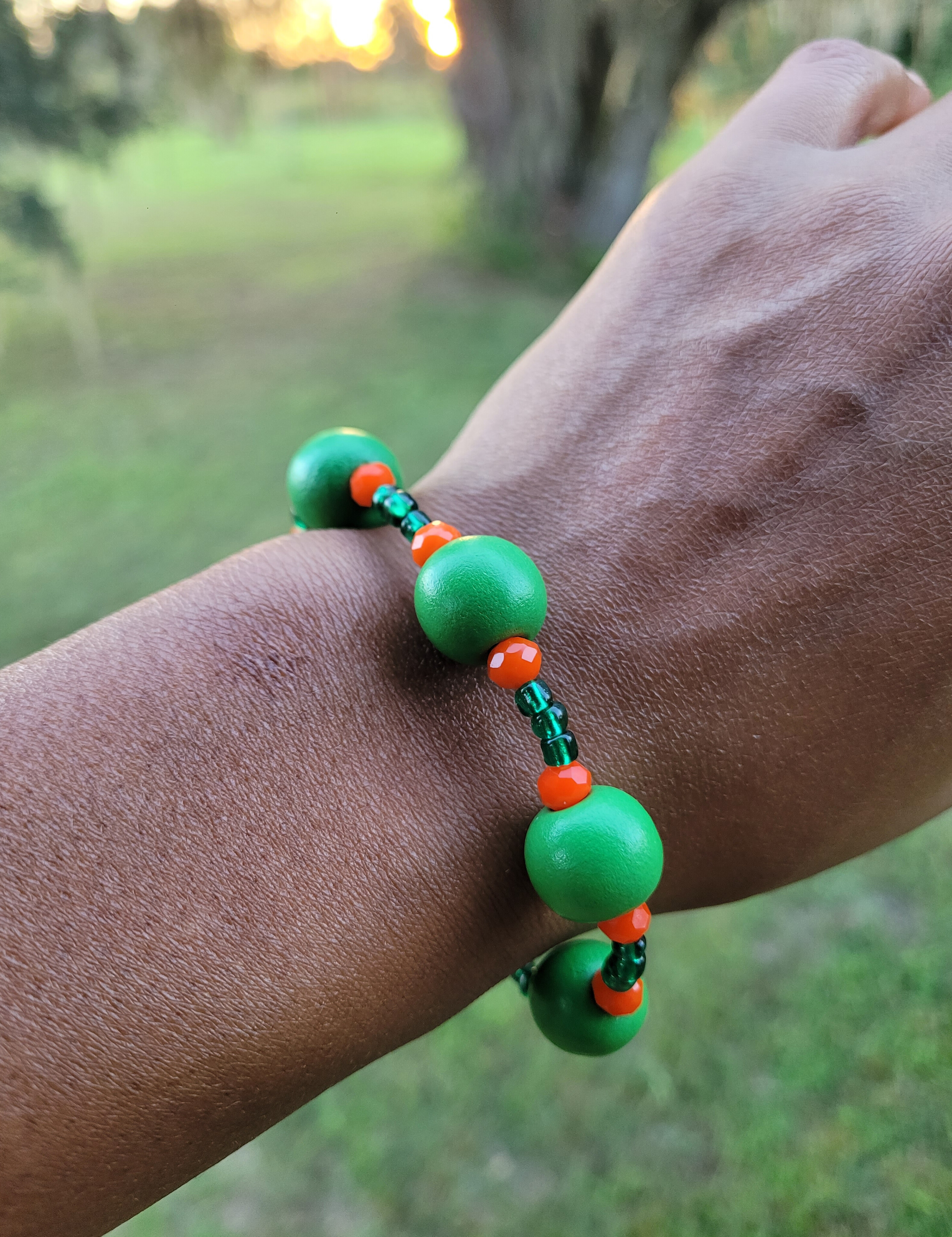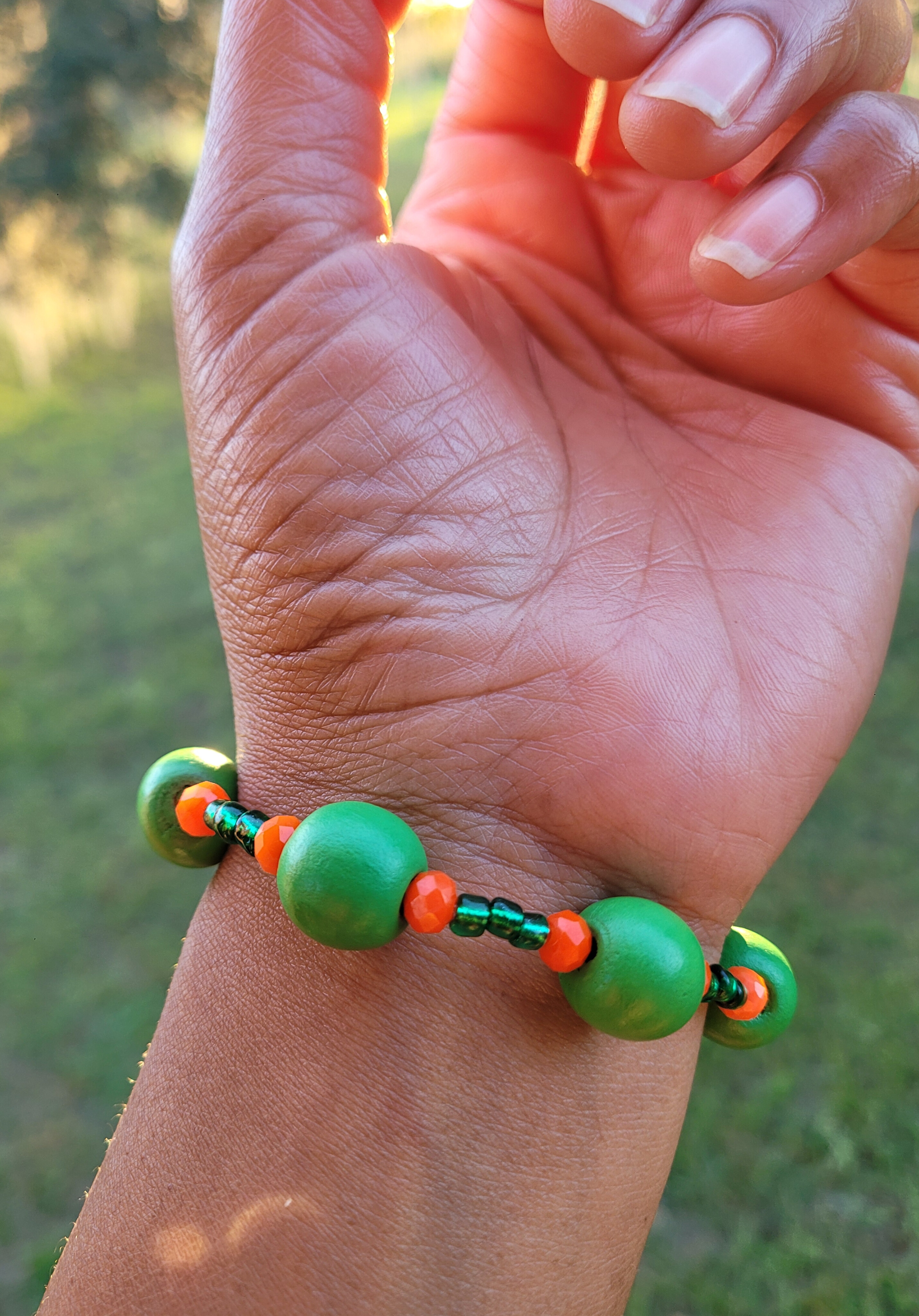 ORANGE & GREEN ME🐍🐍🧡💚 BRACELET💫 READY-MADE (UNISEX) By Nubian Collection Artwear👑