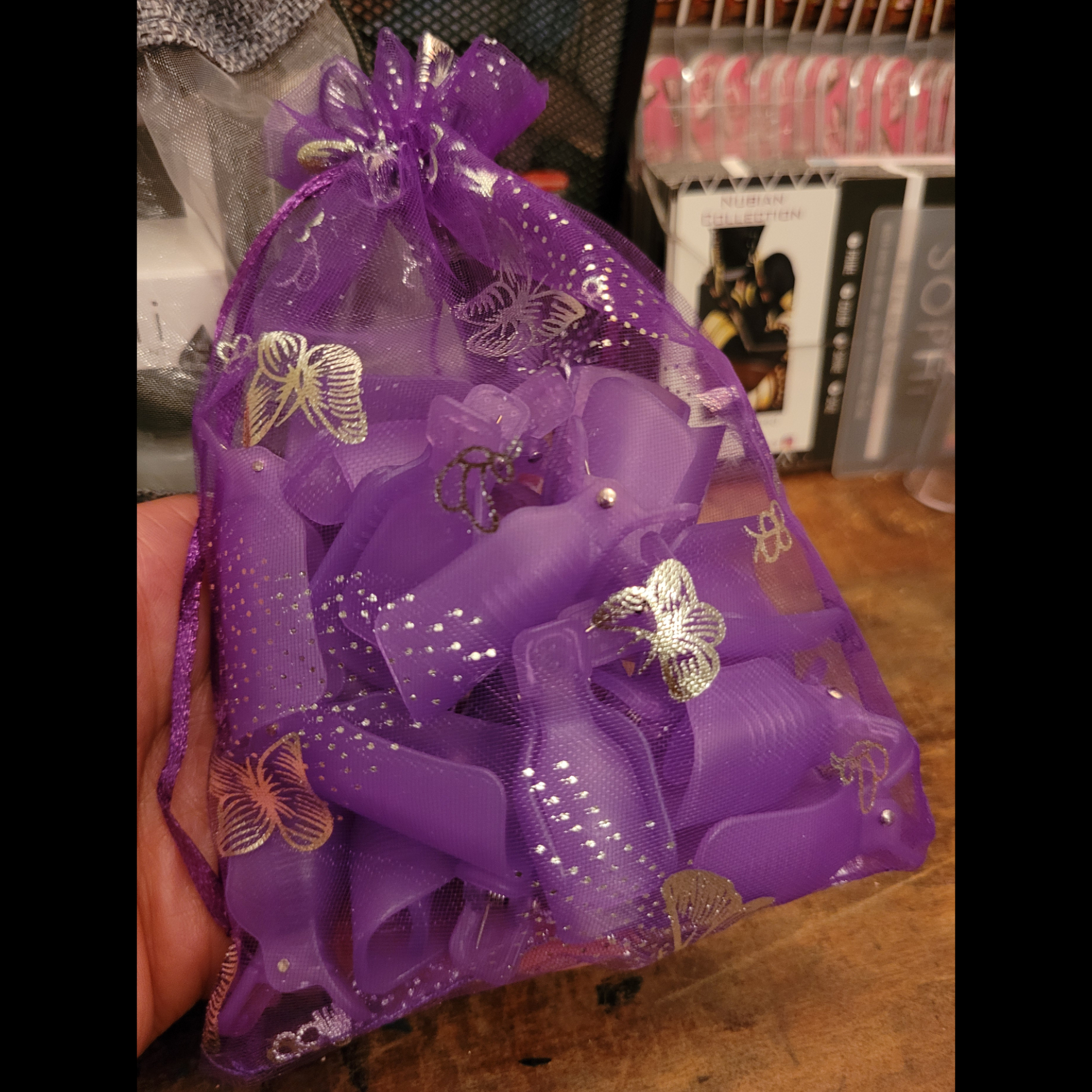 These clips are designed to hold cotton balls or nail pads in place while removing your Non-toxic SOPHi & Piggy Paint nail polishes. This is a 20pcs set (one clip for each finger & each toe) in a decorative organza drawstring gift bag for easy storage after use.