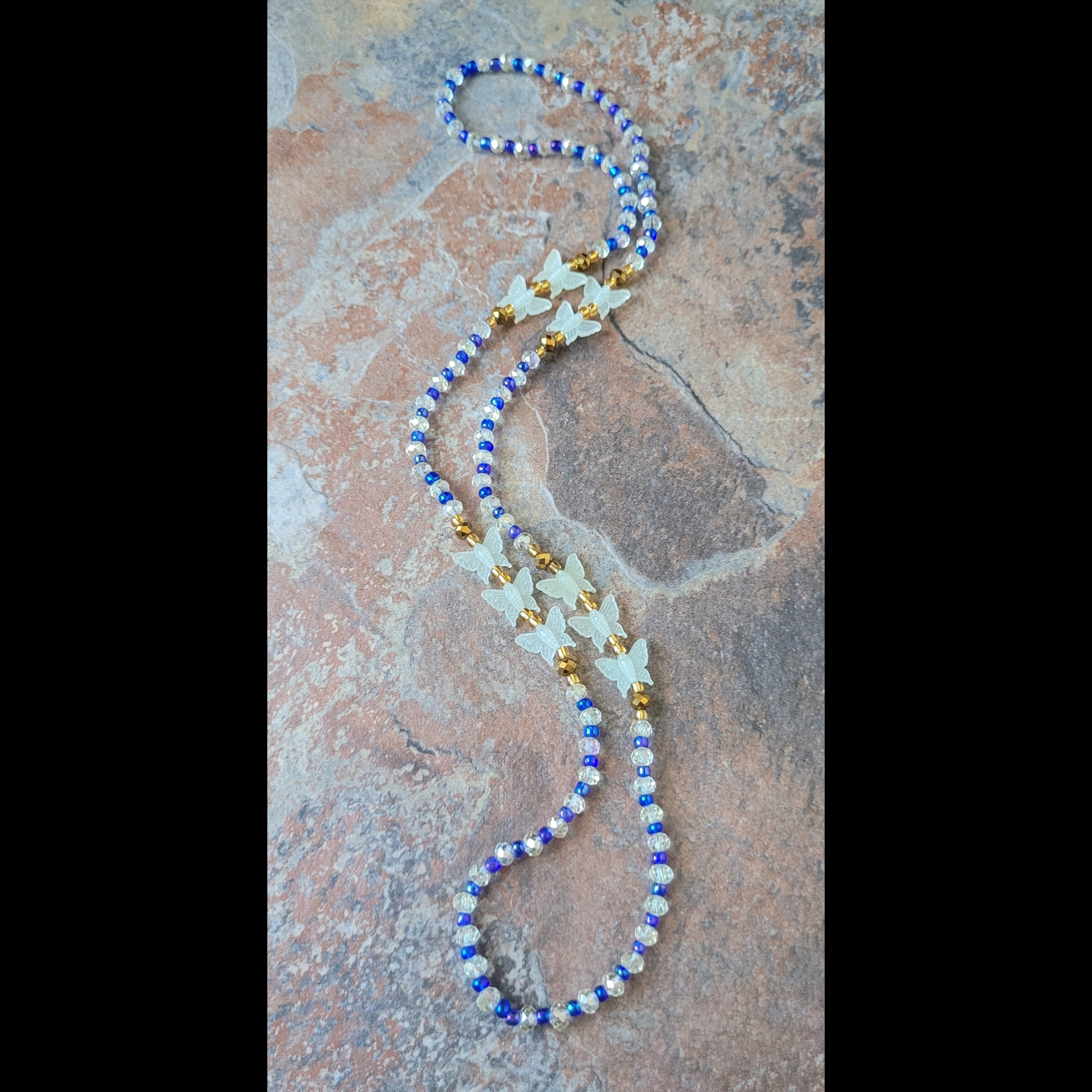 BUTTERFLY BLUE 🦋 GLOW IN THE DARK CRYSTAL HANDMADE WAIST BEADS BY Nubian Collection Artwear 🎨