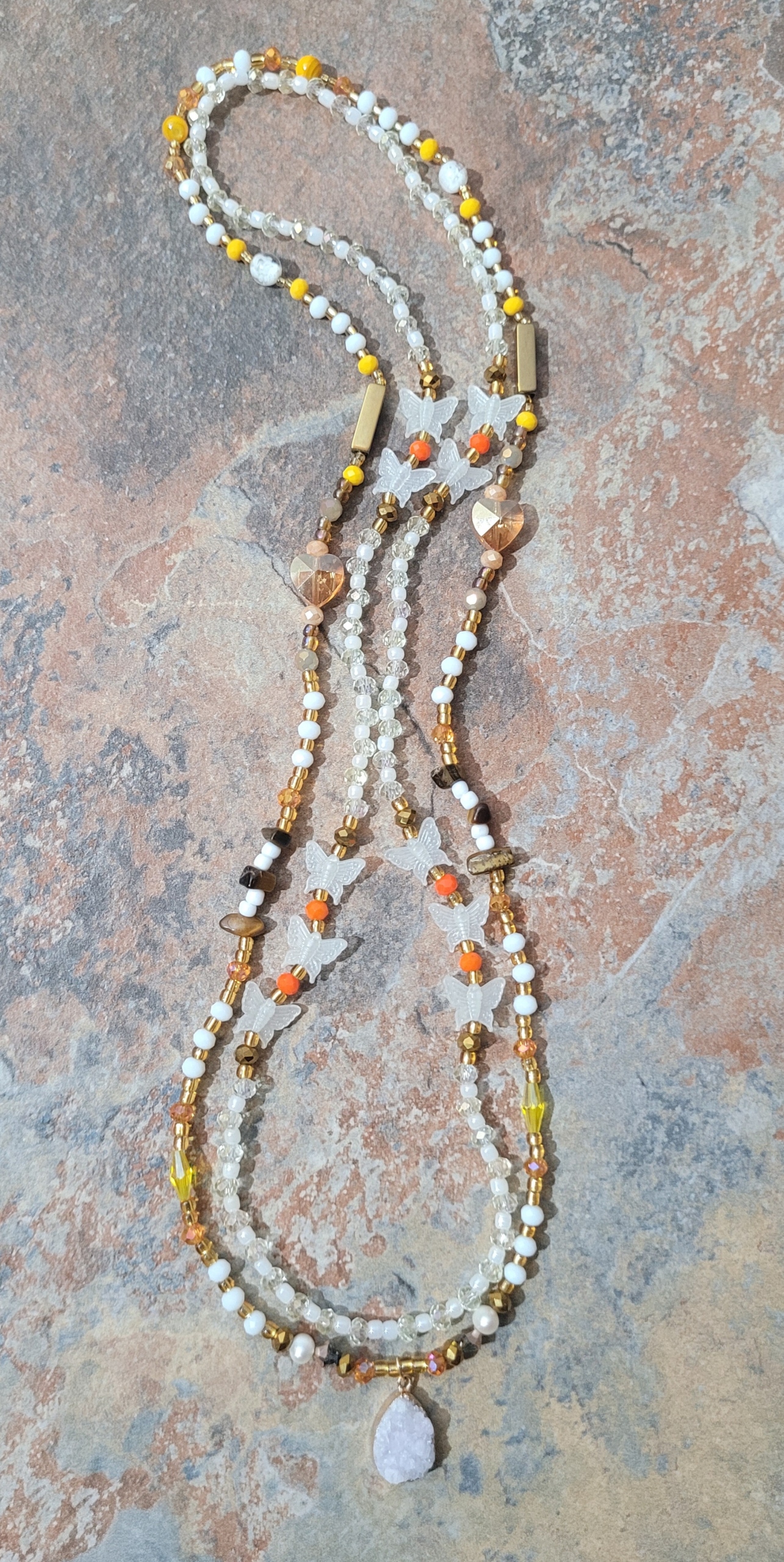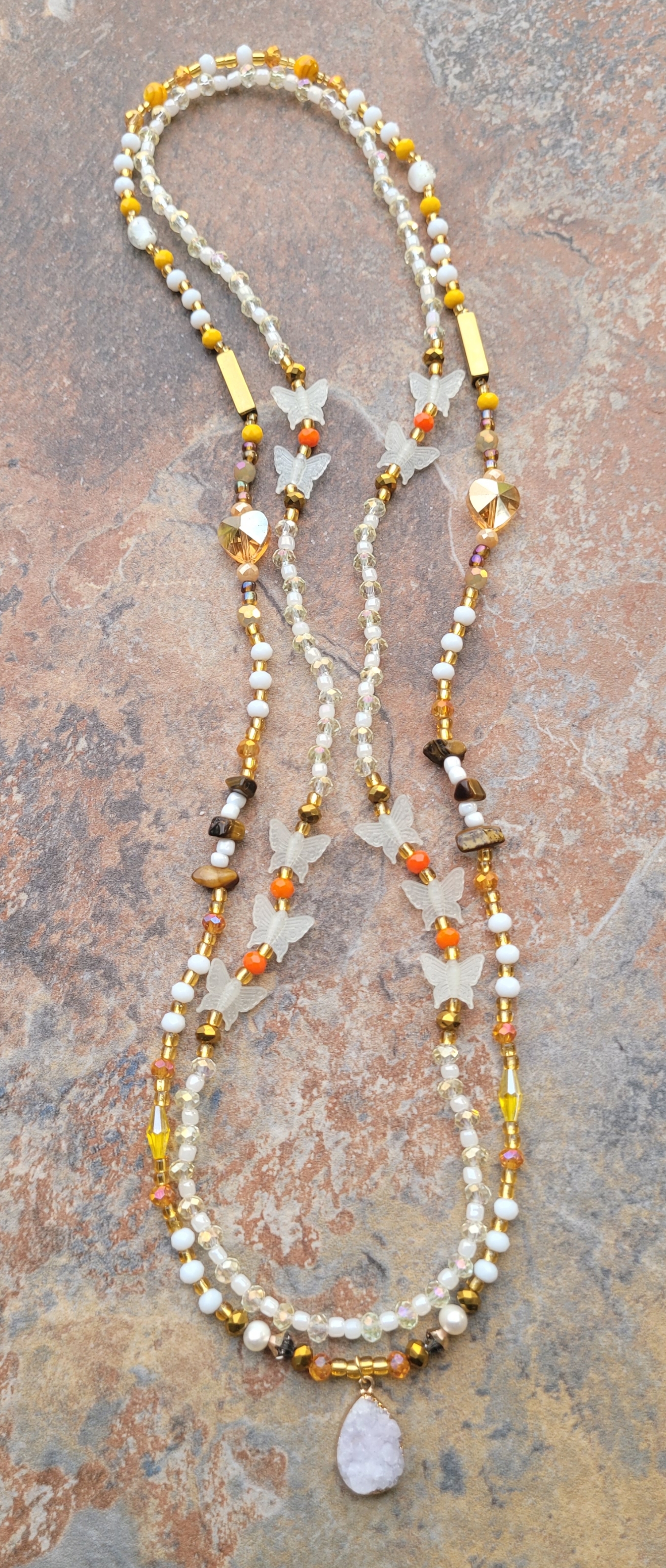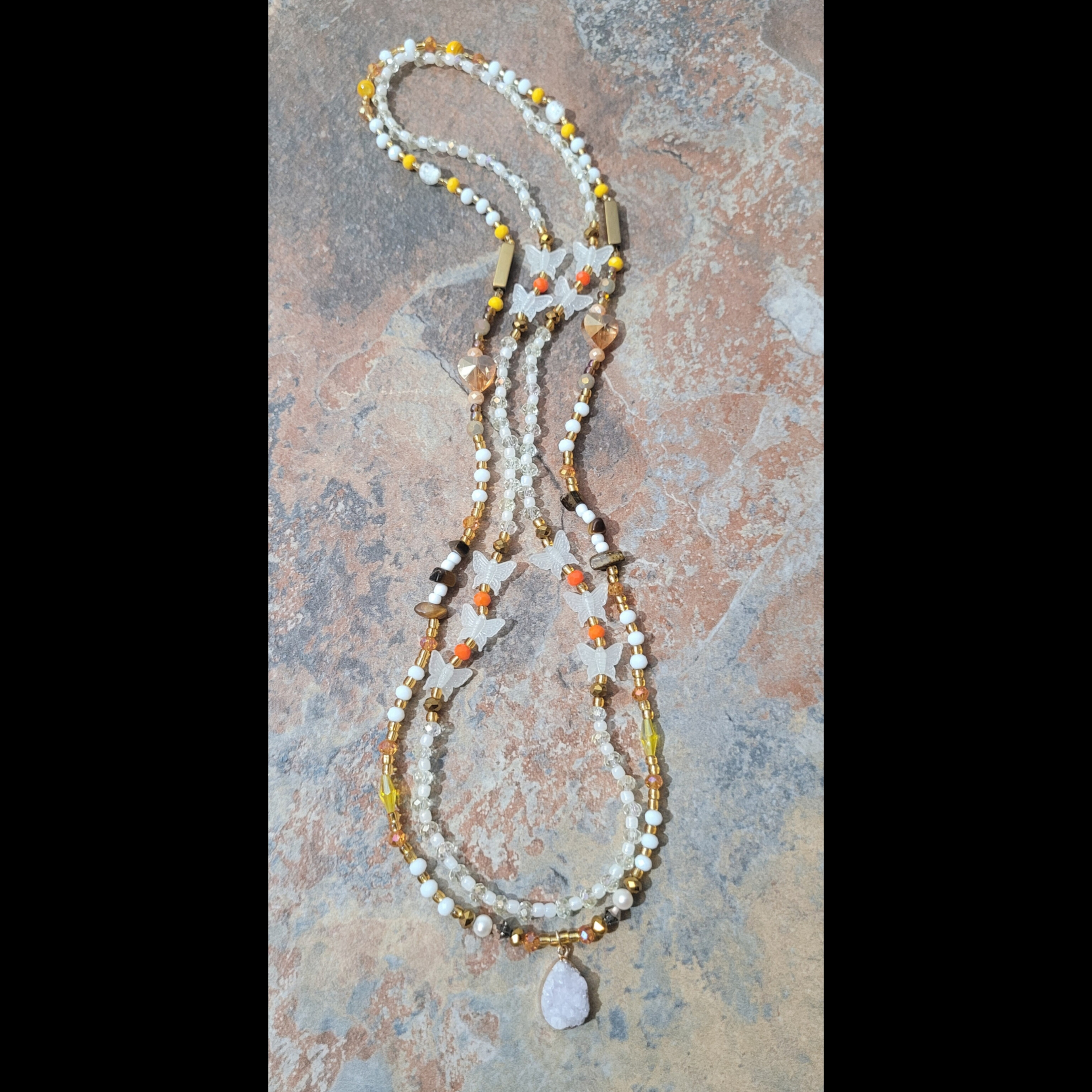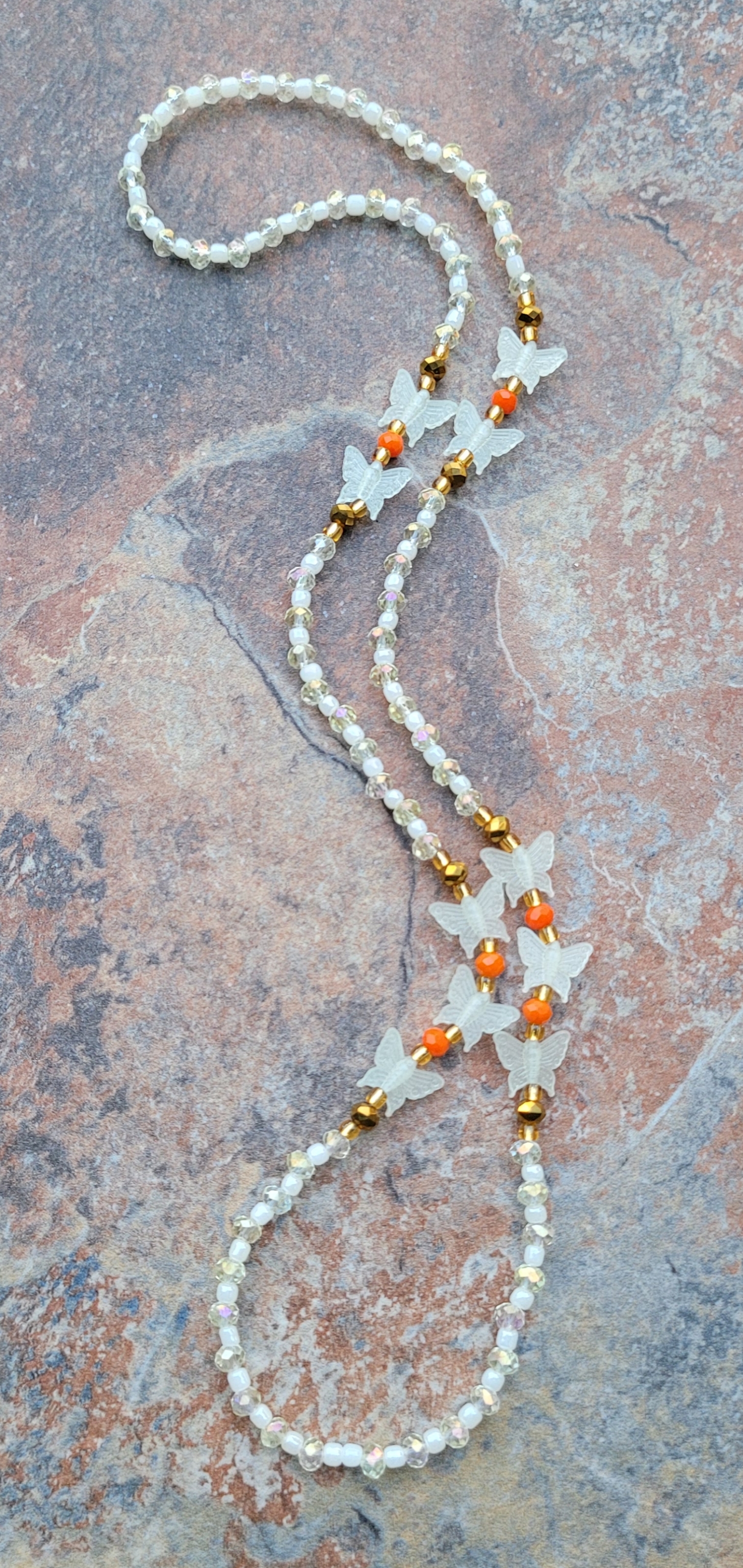 🔸️ AUTHENTIC GHANAIAN 🇬🇭 GLOW IN THE DARK RESIN BUTTERFLY 🦋 & IRIDESCENT CRYSTAL BEADS IMPORTED FROM AFRICA 🌍 - butterflies Symbolize transformation, beauty, rebirth, hope, freedom, endurance, and love 💞