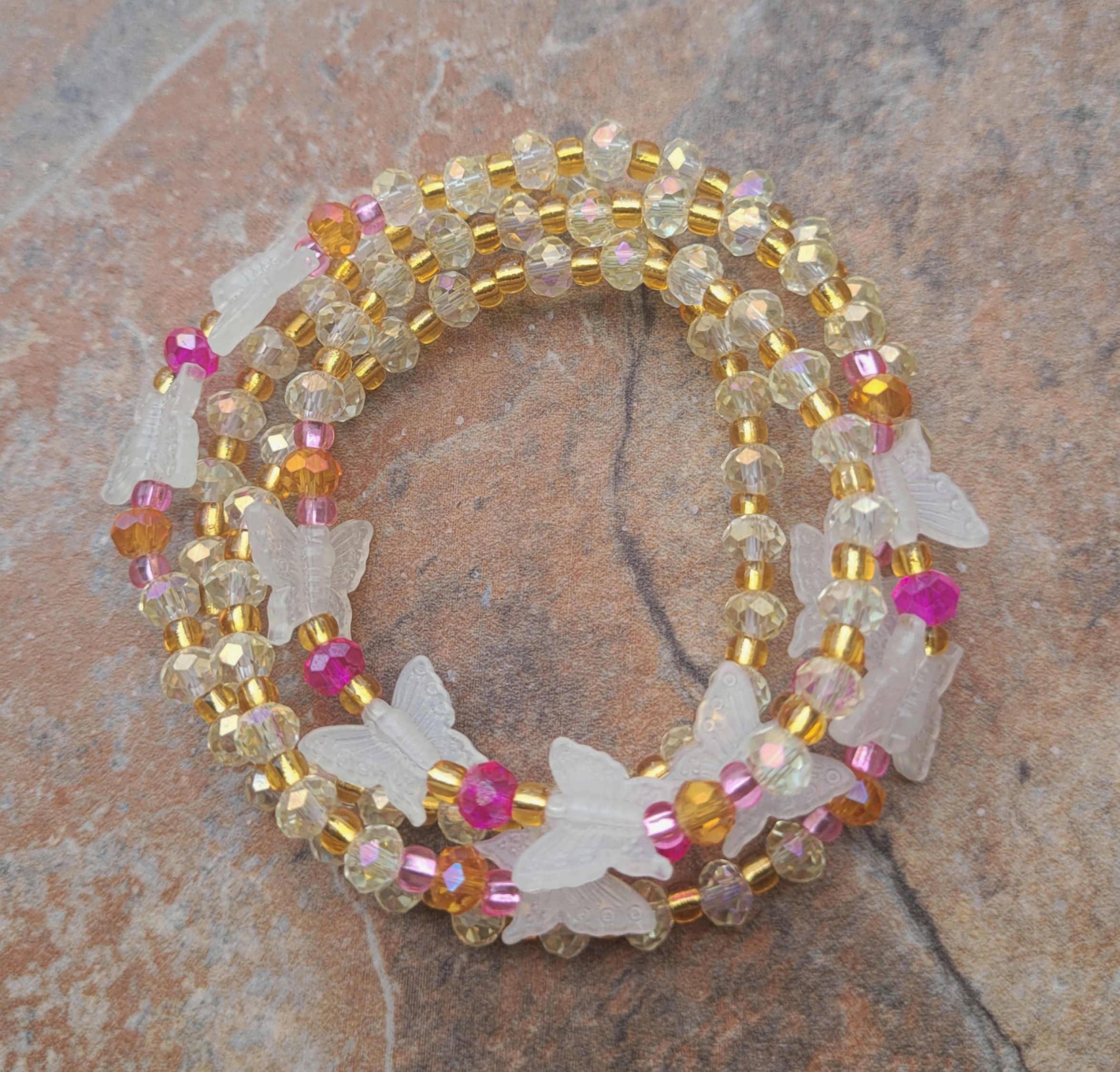🔸️ AUTHENTIC GHANAIAN 🇬🇭 GLOW IN THE DARK RESIN BUTTERFLY 🦋 & IRIDESCENT CRYSTAL BEADS IMPORTED FROM AFRICA 🌍 - butterflies Symbolize transformation, beauty, rebirth, hope, freedom, endurance, and love 💞