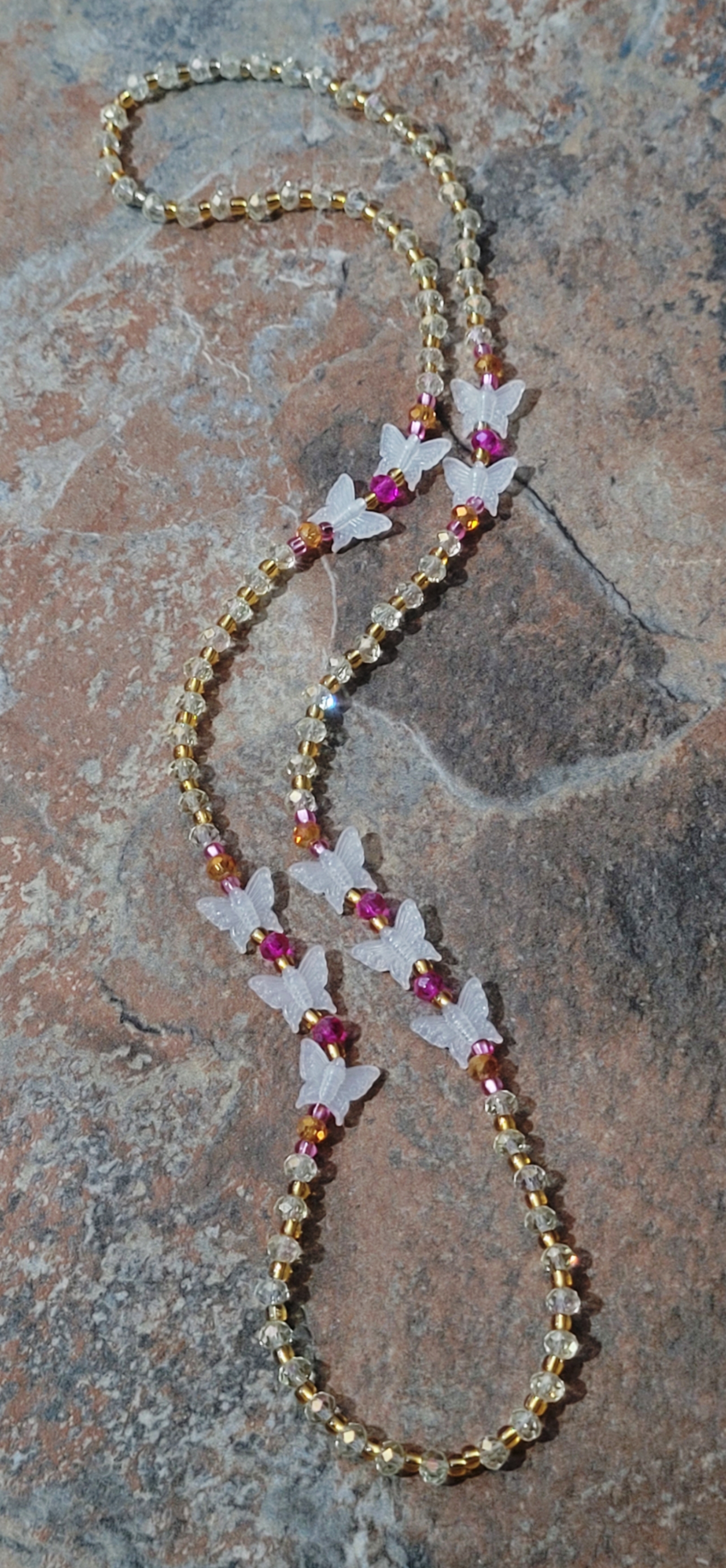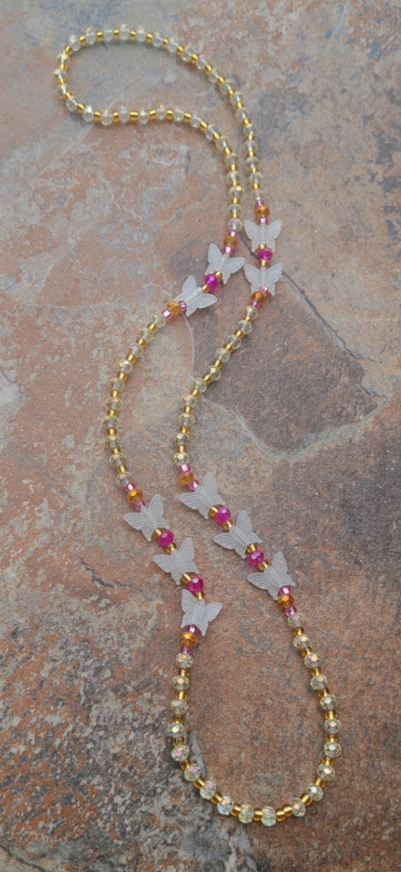 BUTTERFLY HOT PINK💞 GLOW IN THE DARK CRYSTAL HANDMADE WAIST BEADS BY Nubian Collection Artwear 🎨