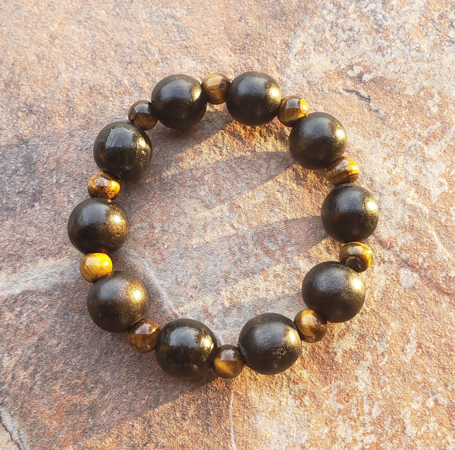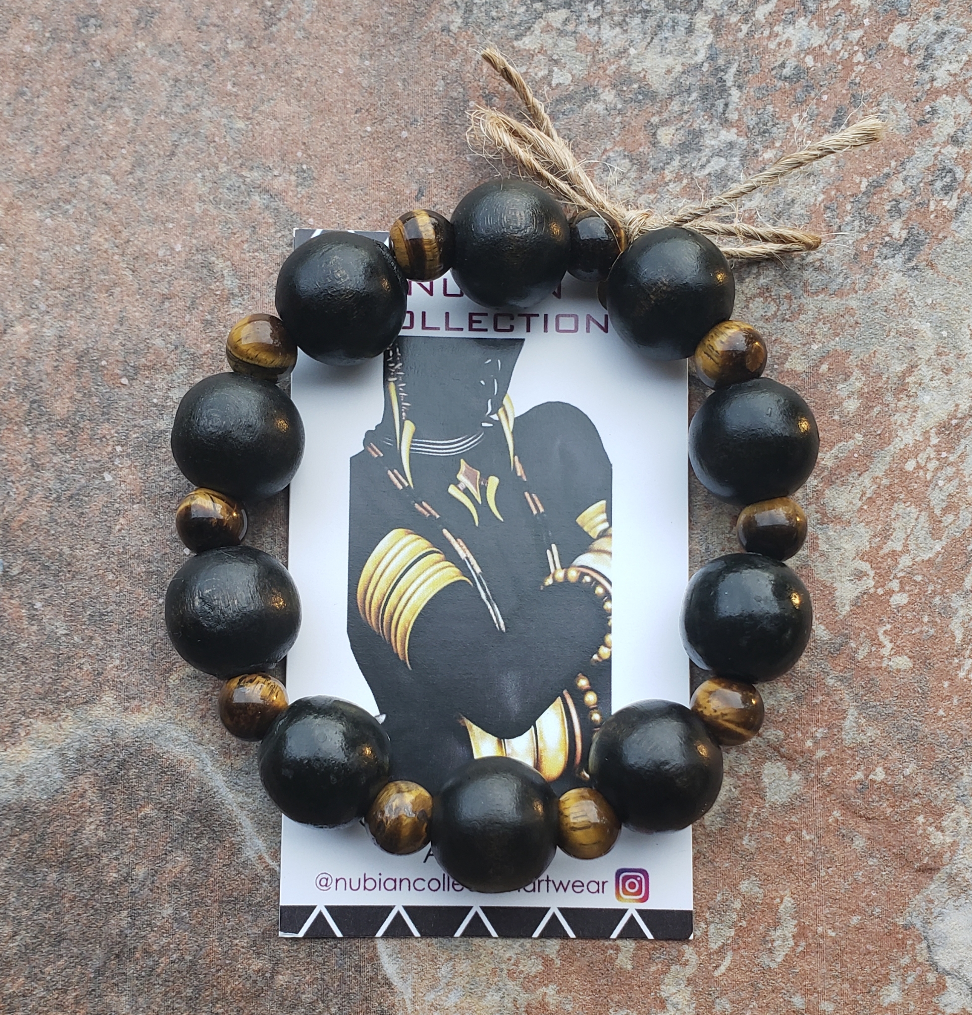 TIGER'S EYE & WOOD BRACELET HANDMADE By Nubian Collection Artwear 👑