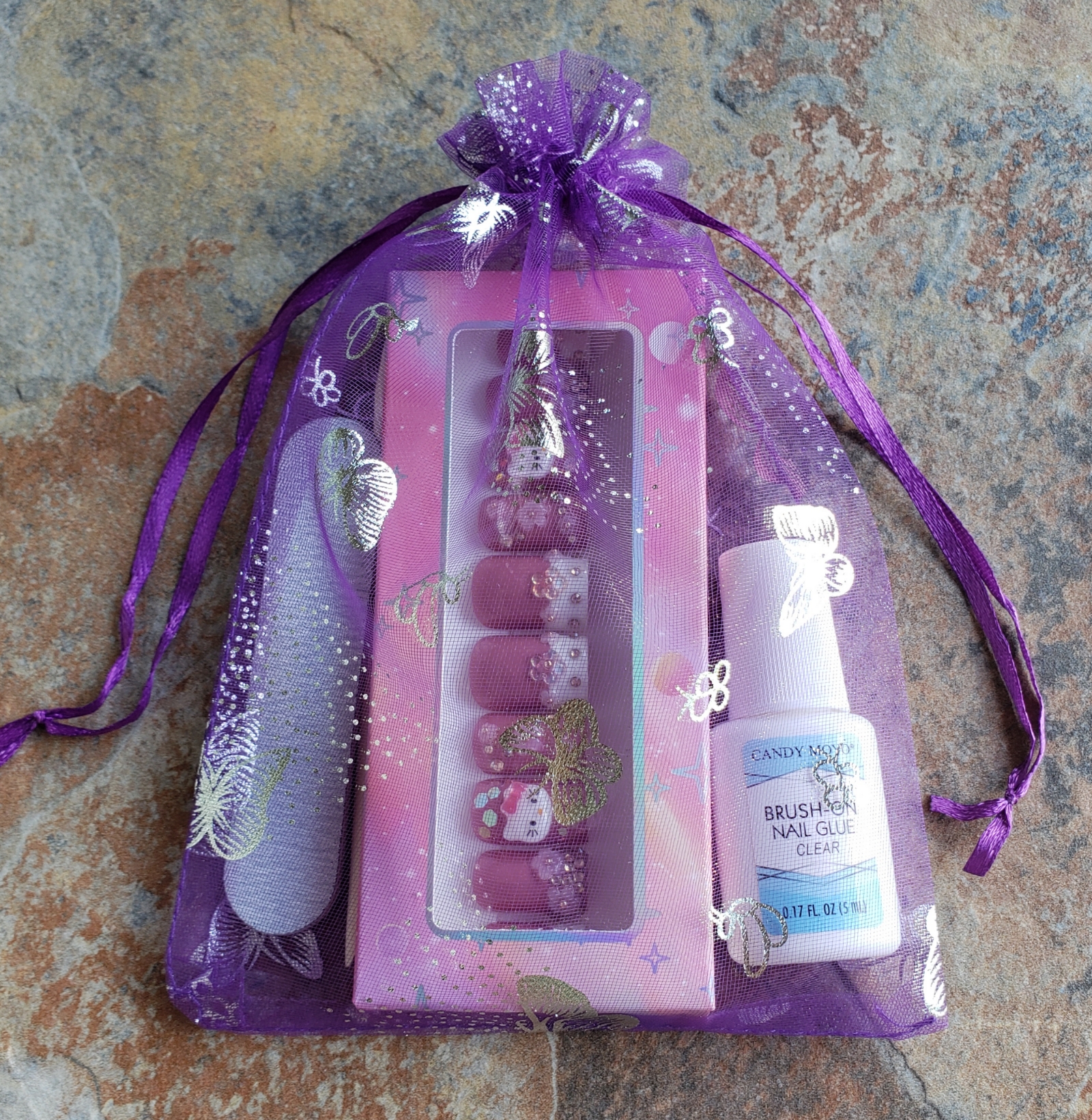 This set comes with 10 REUSABLE, SUPER THICK & DURABLE CUSTOM HAND PAINTED๐จ SALON QUALITY acrylic Nails, 1 nail file, 1 wooden cuticle stick, 1 bottle of brush-on nail glue, 1 decorative gift box & 1 decorative organza gift bag.