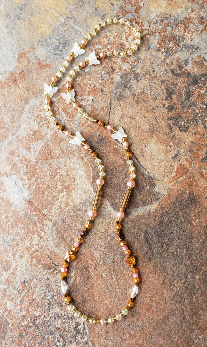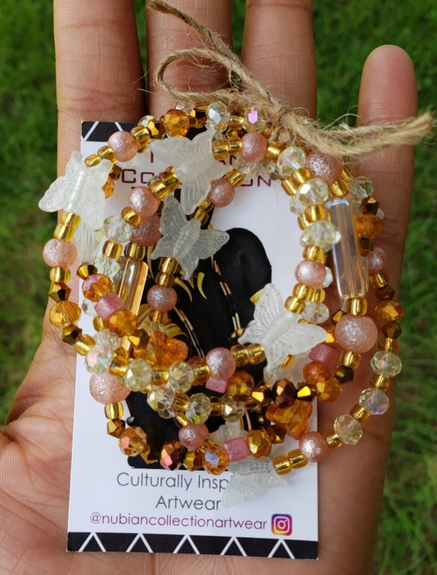 BUTTERFLIES & AMBER 🦋🤎 ➡️ (33 INCH)🔹️READY-MADE🔹️ GLOW IN THE DARK CRYSTAL HANDMADE WAIST BEADS BY Nubian Collection Artwear 🎨