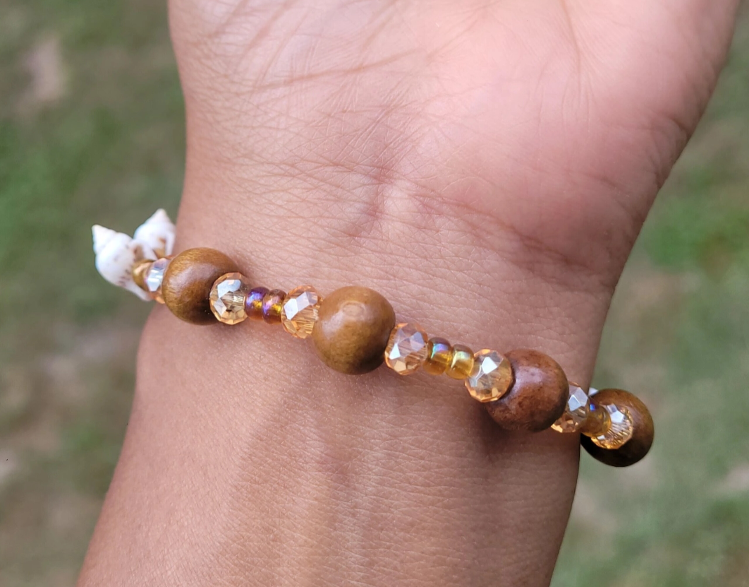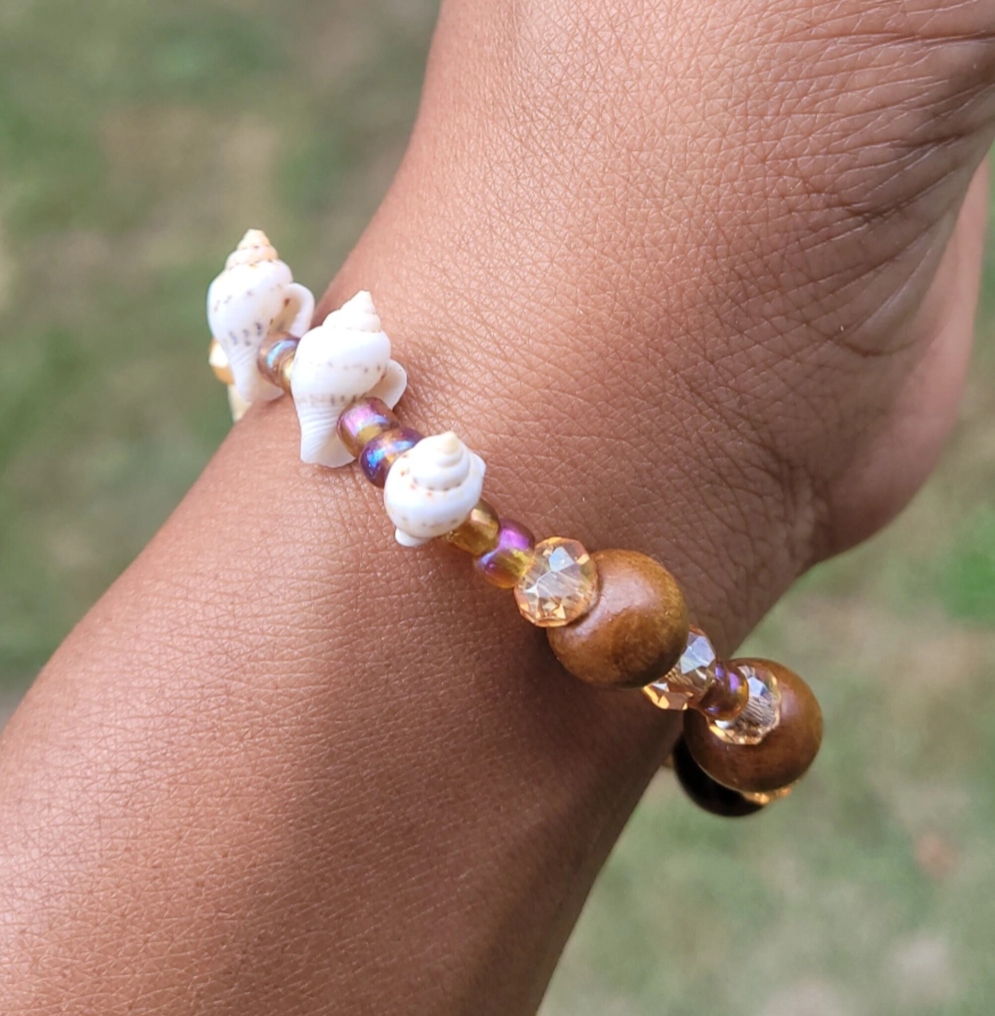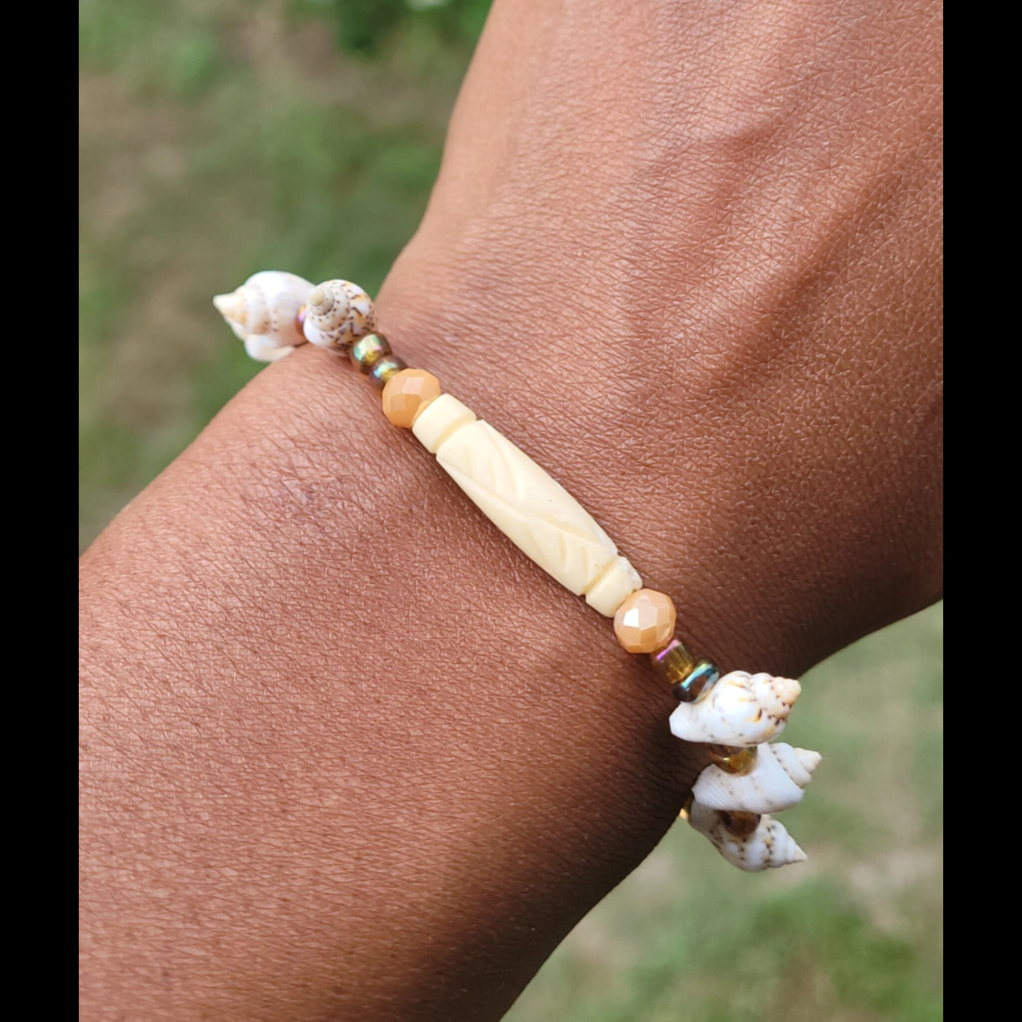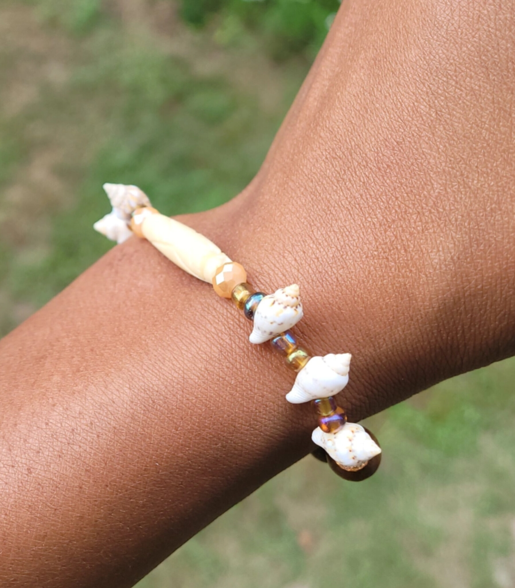 TRIBAL SEASHELL BRACELET 🐚 READY-MADE 🎨 (7 & 1/2 INCHES) By Nubian Collection Artwear 👑