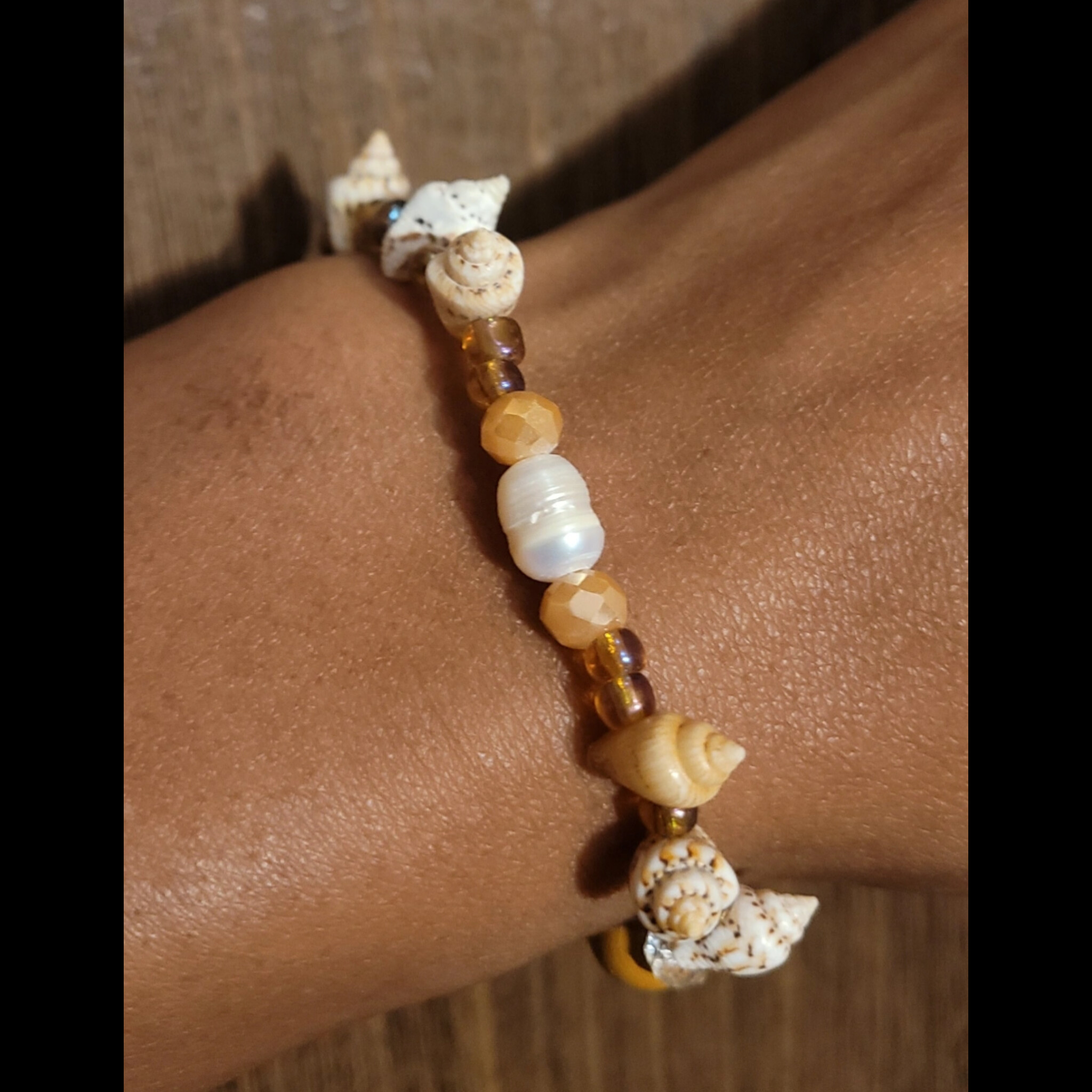 SHELLS ON THE BEACH🐚⛱️ BRACELET💫 (MUSTARD) READY-MADE⏳️🎨 By Nubian Collection Artwear 👑